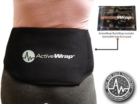 The ActiveWrap® back heat | ice wrap features extreme comfort, and adjustment. Complete with a specially formulated non-migrating 7″ x 10″ hot/cold pack and a durable compression wrap. This back pain modality features Active Medical Plush™ fabrication to lock in the body’s natural warmth when used for soothing heat therapy, while insulating and keeping the cold in during cold therapy applications. Ventilated side panels ensure breathability during long duration use. The ActiveWrap® Back Ice Wrap | Back Heat Wrap demonstrates superior quality compared to typical back ice wraps or foam fabric ice wraps. This is a low profile wrap that can be worn under clothing and during sport, such as golfing etc. This is not a rigid or stiff back brace.